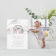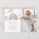 Invite friends and family to your little girl's special day with these cute watercolor photo invitations. This design feature a hand-painted pastel rainbow and watercolor clouds. Personalise with your details in modern typography. Beautiful star watercolor backer.