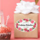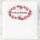 Watercolor Red and Pink Flowers Wreath Oval Design Sticker