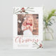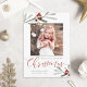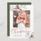 Watercolor Red Berry Greenery Christmas Photo Holiday Card