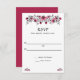 A Watercolor Red Blossoms RSVP Card designed in bright shades of Cranberry Red, with dark floral branches on a white background. The front text includes: the Reply By Date, and Reply details. The reverse is a matching Cranberry Red shade. To personalise, simply insert your Reply Date into our easy template, replacing the sample text.