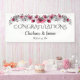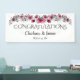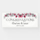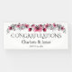 Add this Hanging Banner to your Wedding Reception Accessories. Designed in bright shades of Cranberry Red, with dark floral branches on a white background, the text includes: CONGRATULATIONS, and the Bride and Groom's First Names. To personalise, simply replace the sample Bride and Groom's Names using our easy template.