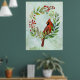Watercolor Red Cardinal Bird Wreath Christmas Poster