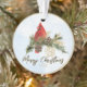 Watercolor Red Cardinal Merry Christmas Ornament