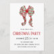 Watercolor Red Green Plaid Bow Christmas Party Invitation