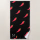 A spicy hot beach towel with a original hand painted watercolor pepper Illustrated by Dream Big Digital Design