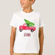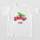 Personalised Christmas tshirt for kids featuring watercolor red pickup truck with Christmas tree in the back