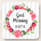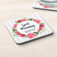 Watercolor Red & Pink Flowers Circle Wreath Design Coaster