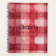 Fun red watercolor plaid planner featuring a customisable name, perfect to make back to school or starting college memorable.