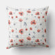 Watercolor Red Poppies Pattern on White Cushion