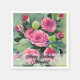 Watercolor Red Roses Happy Birthday Napkin