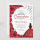 Watercolor Red Roses Silver Quinceanera Invitation