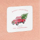 Watercolor Red Truck Retro Christmas Square Sticker