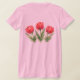 Elegant watercolor illustration of red tulips with soft green leaves, inspired by nature and floral beauty.