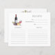 Elegant watercolor red wine and cheese 'Cheers to love' Bridal shower recipe card.
