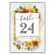 Watercolor Red Yellow Blue Flowers Wedding Table Number