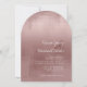 This modern, arch-shaped wedding invitation is slightly informal with warm, personal feel and features an abstract, watercolor design resembling reflections on water. This example has a gradient colour palette from soft rose to trendy Cinnamon Rose. Personalise with the bride and groom's initials, wedding date and details using the provided template. Search ID774 to see complete matching set and additional colour options.
