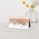 This modern wedding place card is slightly informal with warm, personal feel and features an abstract, watercolor design resembling reflections on water. This example has a gradient colour palette from pale peach to dark terra cotta. Personalise with the bride and groom's names and wedding date using the provided template. Search ID774 to see complete matching set and additional colour options.