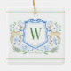 Watercolor Reindeer Monogram Crest Christmas Ceramic Ornament