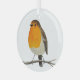 This glass ornament features an original watercolor painting of a perky English Robin Redbreast perched on a snowy branch.