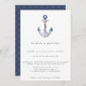 Beautiful watercolor rustic roped anchor with navy blue nautical knot pattern, nautical themed wedding invitation.