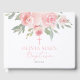The lovely watercolor pink floral blooms, roses, and a simple pink cross. adorn the cover of this dainty, girl's baptism guest book. Perfect for a Baptism reception.