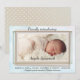 An elegant baby photo announcement featuring your own favourite photo framed by a watercolor painted design with soft pearly and rose gold frames. The back has a pretty retro polka dot design.