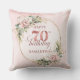 Celebrate 70 years in style with this shimmering rose gold pillow. Featuring dusty pink, blush pink, and light pink watercolor flowers, lush greenery, eucalyptus accents, and a gold frame, this boho, floral, and bohemian design makes a perfect gift for a 70th birthday pillow.