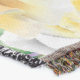 A quality printed throw has its advantages. This is a much finer weave throw than its loopier cousins, and though lighter, it is worth the investment for custom room accessorizing. The back is much prettier than the typical brown, and the fringe on the long sides very vivid, the selvage nicely done. Before photographing, I washed the throw in cold water, delicate, with a thicker woven throw the same size. On tumble dry low, this throw was dry in half the time as the other. This is a very practical quality if you use throws for furniture covers or to wrap up in frequently. The sleekness of the fabric makes it a great layer for accenting or protecting without the feeling of sitting on too much stuff. Perfect for napping or when you feel a light chill coming on. The color printing is beautiful and on this fabric, matched the design and color of my Photoshop image. This is an advantage for blending room fabrics and colors. The fringe on the short sides prints the colors from the design image and therefore varies from the side fringe. I streaked a white fractal line through the plaid pattern to give the illusion of weaving. This printed as crisp as an illusory thread, and put some white in the short side fringe, showing another advantage of print vs loomed- for artistic purposes, line lines, detail, and color integrity can be planned and preserved. My loomed throws have color limitations and more of a needlepoint texture. Print throws reproduce an exact image. The throw felt a little stiff straight out of the package, but this went away in the first delicate wash. Of course I searched the wash water for ink or bleeding and there was none.
