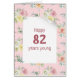 Old-fashioned watercolor rose bouquet on pink blush background for 82nd birthday.