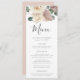 Elegant floral wedding menu card featuring a top border of painted cream white roses, blush and mauve pink orchids, and green leaves and foliage. Personalise the floral wedding menus by adding your names, wedding date, and wedding menu details. Designed to coordinate with our Watercolor Roses and Orchids wedding collection.