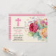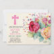 Beautiful Catholic Christian Baptism, Christening invitations for the celebration of girls featuring floral cross and flowers in colours pink, purple and white. They are so pretty and ideal for your daughters special event. Handwritten style fonts add a modern, trendy element while still ensuring a classy elegant girls Baptism Christening invitation. You can edit the text as desired. For assistance and matching items contact the designer via the tab below.