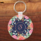 Watercolor Roses Floral Navy Glitter Monogram Key Ring