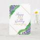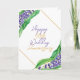 A sophisticated combination of watercolor lavender flowers, lush green leaves, and shimmering gold text creates a timeless tribute for a 50th wedding anniversary.