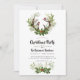 Christmas party invitation featuring reindeer antlers, bullfinches, holly and pine customisable to your event specifics.