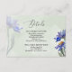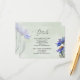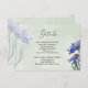 Theme Parties' rustic watercolor wedding details enclosure card design features pretty purple daisies and is set on sage green watercolor swatches. Include your accommodations information and reception details here. #WeddingDetails #RusticWedding #PurpleDaisies