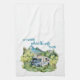 Watercolor RV Motorhome Camping Scene Tea Towel