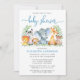 Watercolor Safari Animals Baby Shower Blue Script Invitation