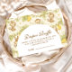 A sweet storybook-style safari design featuring gentle watercolor baby animals including lions, giraffes, and elephants surrounded by soft jungle greenery and delicate botanical details. The warm neutral palette of cream, honey gold, and soft olive creates a timeless nature-inspired aesthetic, while the elegant arched layout leaves beautiful space for personalized event details.
