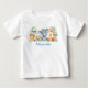 Watercolor Safari Baby Animals Baby Shirt. Baby Animals include Elephant, Monkey, Giraffe, Rhino, Zebra and Lion on fern leaves. Watercolor Botanical Greenery. Blue Text. Add Name.