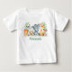 Watercolor Safari Baby Animals Baby Shirt. Baby Animals include Elephant, Monkey, Giraffe, Rhino, Zebra and Lion on fern leaves. Watercolor Botanical Greenery. Green Text. Add Name.