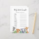 Bring some fun and excitement to your baby shower with a "Watercolor Safari" Baby Word Scramble game card. This beautifully designed card features adorable, hand-painted safari animals like elephants, giraffes, and lions, surrounded by lush greenery in soft, earthy tones. The watercolor style adds a playful yet elegant touch, perfectly complementing your safari-themed celebration. Guests will enjoy unscrambling baby-related words, while the charming design keeps the atmosphere whimsical and lighthearted. It's an interactive and entertaining addition to your baby shower, blending fun with the beauty of nature!