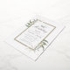 Elegant botanical greenery birthday invitation featuring watercolor foliage and gold foil shimmer. Colours in dusty blue and beige tan.