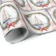 Watercolor Sailboat In Christmas Wreath Wrapping Paper