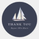 Beautiful watercolor sailboat, nautical themed sticker with navy blue background.