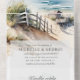This all in one wedding invitation features a scenic beach watercolor illustration paired with an almost see through square where all your custom information is written in elegant fonts. Check our store for more items from this collection.