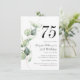 Cute and modern, yet elegant 75th birthday party invitations. Featuring a trendy layout and watercolor floral and greenery eucalyptus and pink blush. Perfect for any age birthday party invitation. The template that can be easily edited and the text replaced with your own details by clicking the "Personalize" button. For further customization, please click the "Customize Further" link and use our design tool to modify this template.