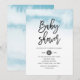 Modern chic boy baby shower invitation with watercolor background and bold script.