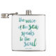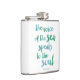 Well made flask, a little better than I had expected. Flask came in clear plastic box which gave it a nice presentation when I took it out of the zazzle packaging. Image is not printed on flask but on sticker. Don't know how this will hold up I haven't used it yet. This would make a Great gift! I plan to purchase more for friends! Cheers. I thought a little brighter than computer. Very crisp, writing wasn't