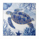 Ceramic Tile - Serene watercolor sea turtle swimming through blue ocean tones with coral, starfish, and shell details. Ideal for ocean lovers, marine life fans, and those who enjoy calm, coastal-inspired designs.