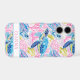 Customize this colorful watercolor sea turtles in pink and blue iPhone 17 case with your your name in a trendy modern CAP font in pink on white. It's so modern and trendy!